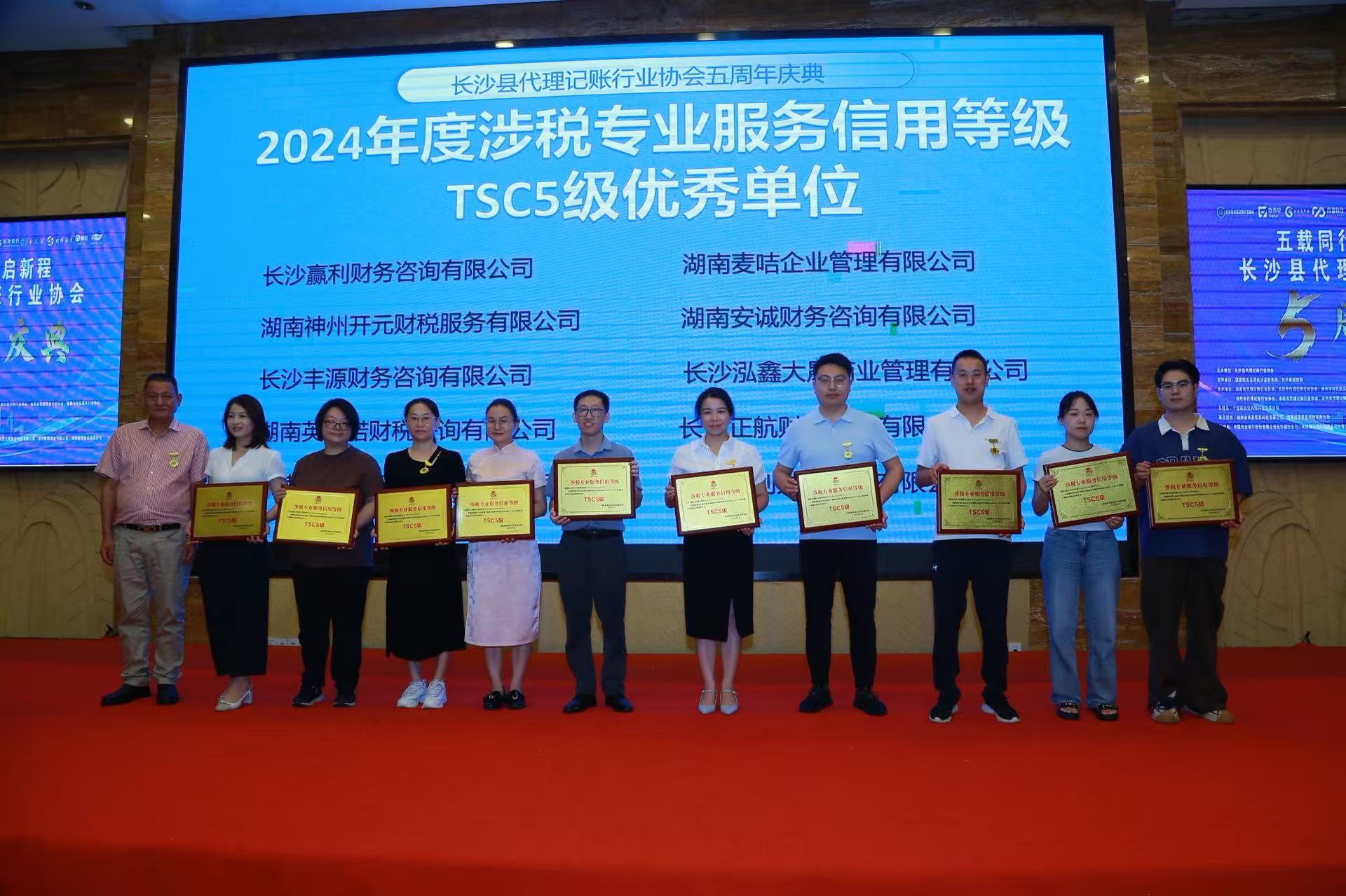 这份荣誉属于每一位信任赢利财务的客户伙伴,也属于全体员工的共同努力。未来,我们将以TSC5级标准为新的起点,持续提升服务水平,助力企业降本增效、合规经营,为湖南财税行业的健康发展贡献力量!