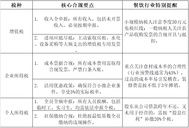 2.对外(价值提升):将餐饮行业的合规要点作为我们服务价值的延伸,主动为客户提供风险诊断和合规建议,深化客户关系,从“代理记账”升级为“财税健康顾问”。