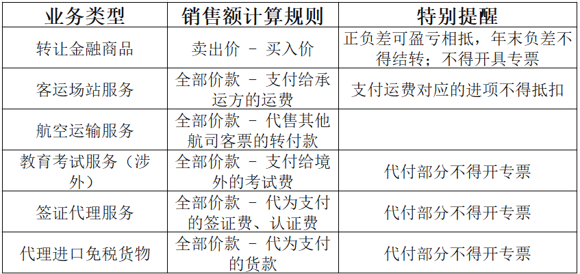 以下情形可以扣除相关价款后的余额计算销售额,但扣除项目取得的扣税凭证,其进项税额不得抵扣,避免重复扣除:
